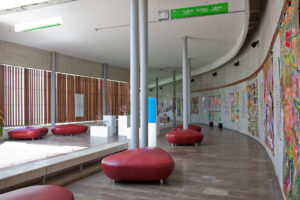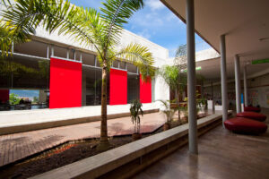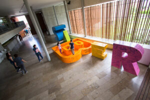 Cuenta con un auditorio, ludotecas, salas de cómputo, salas de lectura, un corredor-galería y zonas comunes para el deporte y la recreación.